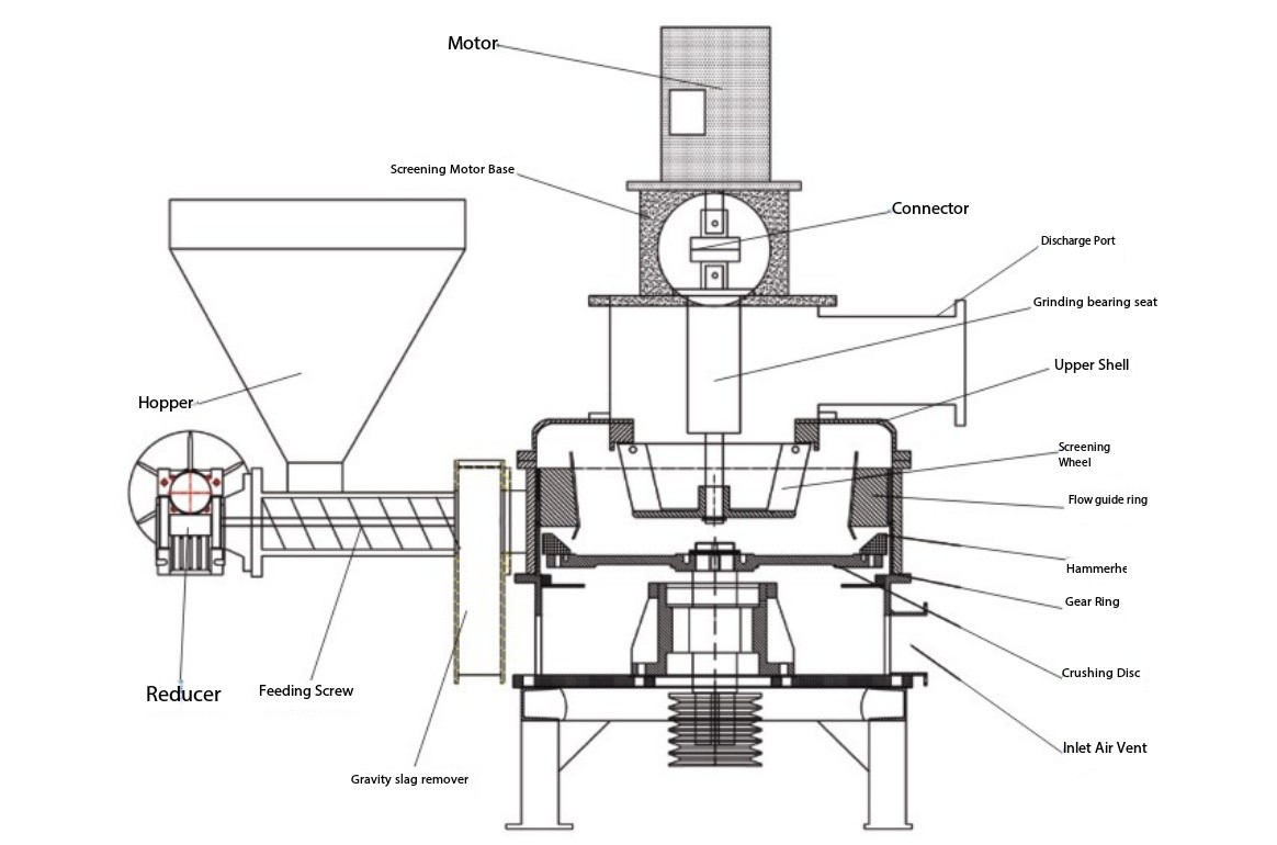 Zwaartekrachtonzuiverhedenval: Het toevoersysteem bevat een ingebouwde zwaartekrachtscheider om zwaar vuil en metalen onzuiverheden te verwijderen voordat ze de maalkamer binnendringen, waardoor de rotor en voeringen tegen beschadiging worden beschermd.