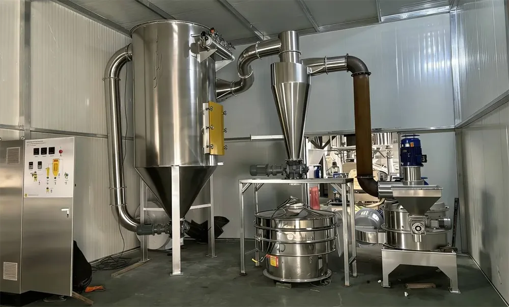 1. Voedselverwerkende industrie: het kan worden gebruikt voor de productie van groente- en fruitmaaltijdvervangingspoeder, gezichtsmaskerpoeder voor fruit en groenten, poeder voor babyvoedingssupplementen, specerijen (zoals uienpoeder, knoflookpoeder) en andere producten. Het gemalen ultrafijne poeder kan direct worden toegevoegd voor gebruik, wat niet alleen de smaak en voedingswaarde van producten kan verbeteren, maar ook de opslag en het transport kan vergemakkelijken, waardoor voedselbedrijven het concurrentievermogen van hun producten kunnen verbeteren.